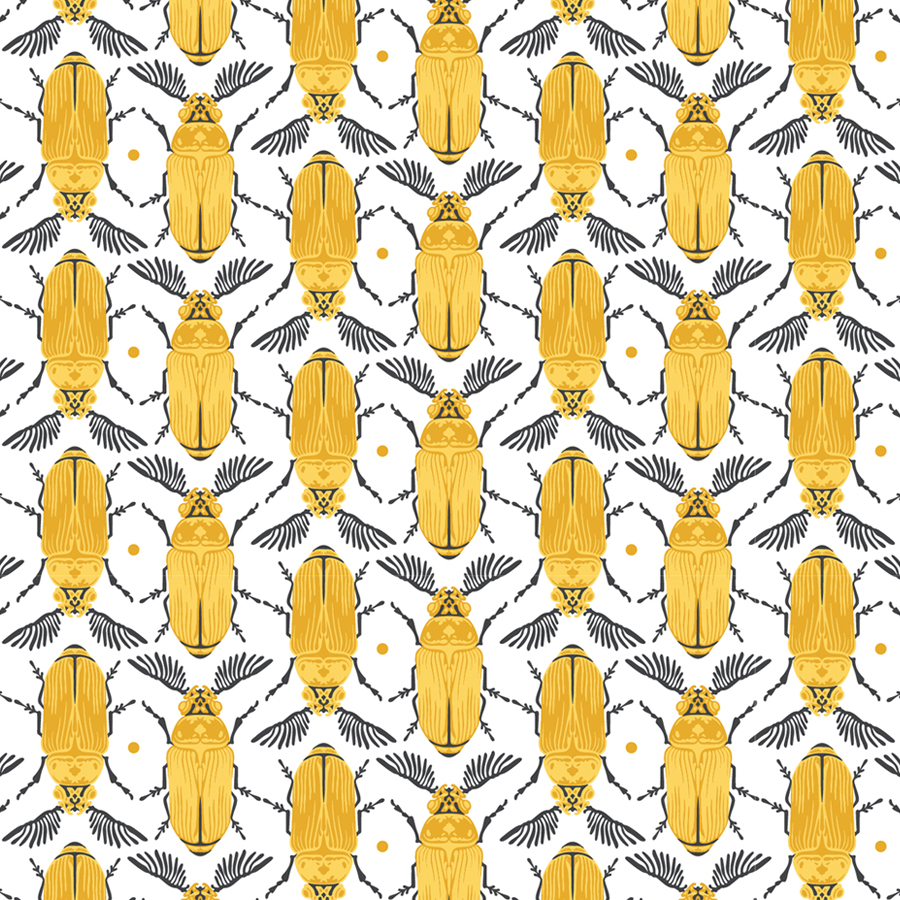 The set of patterns showcased here are part of a wider series called “Entomology” that encompasses a wider range of designs that depict six different species of beetle.