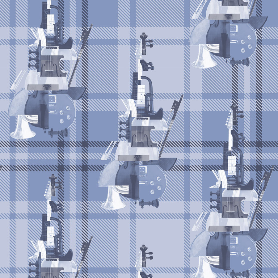 The central element was based on a series of photographs, which were cropped and reassembled again with the aim to create a new hybrid that unifies and celebrates all kinds of musical instruments. The focus was placed on highlighting the intricate detail of particular features from instruments such as a trombone, violin, cello and an electric guitar.